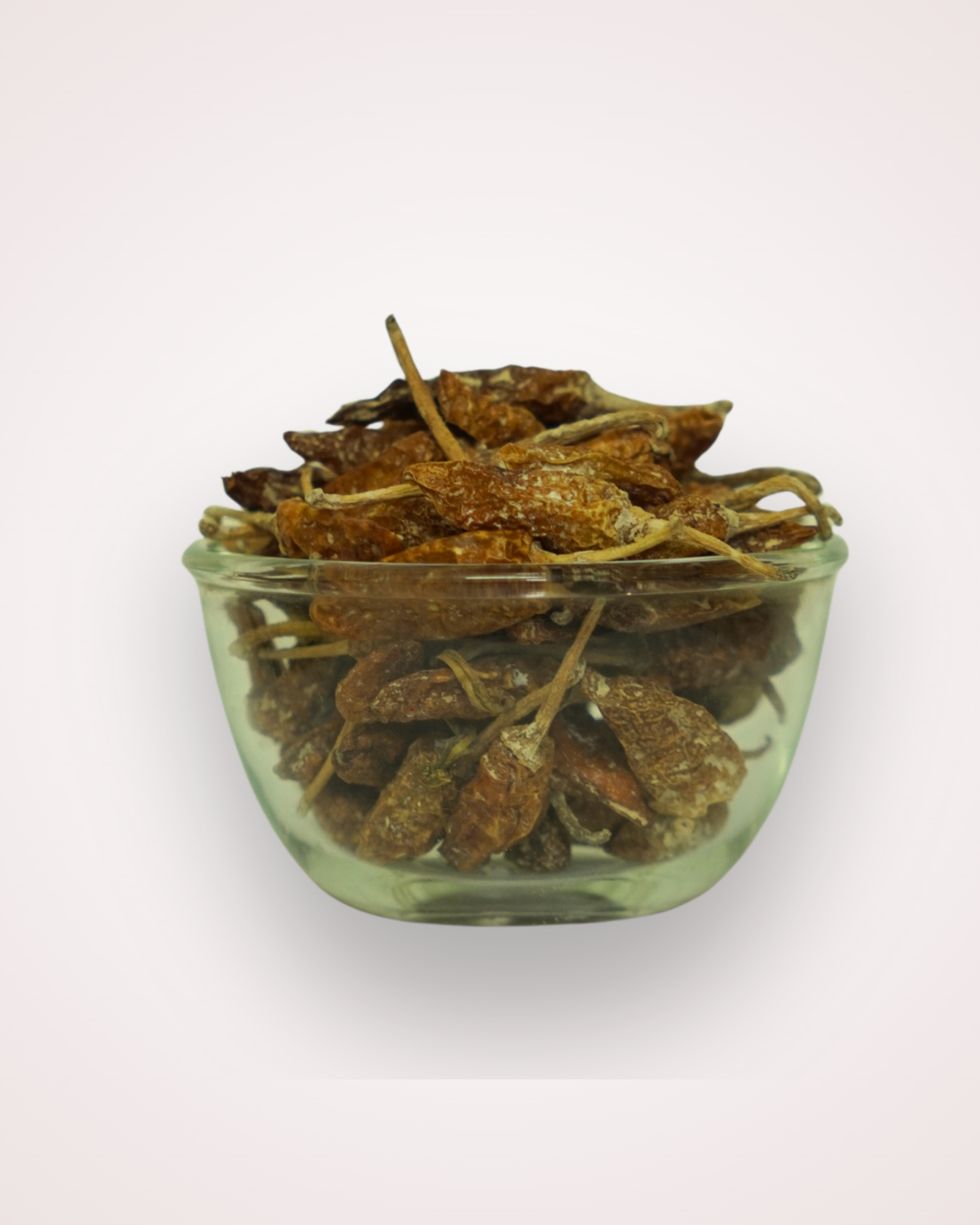 Soaked in curd and salt before being sun-dried, our Curd Chilly is the perfect spicy-sour condiment to perk up a plate of curd rice. Once fried, it turns crunchy and intensely flavorful, offering heat and depth with every bite. A must-have for spice lovers who cherish traditional tastes.